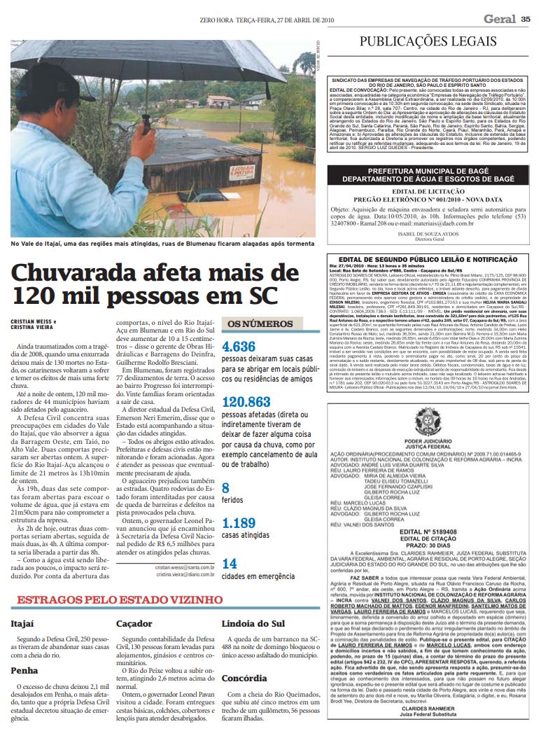 O excesso de chuva deixou 2,1 mil desalojados em Penha, o mais afetado, tanto que a própria Defesa Civil estadual decretou situação de emergência.